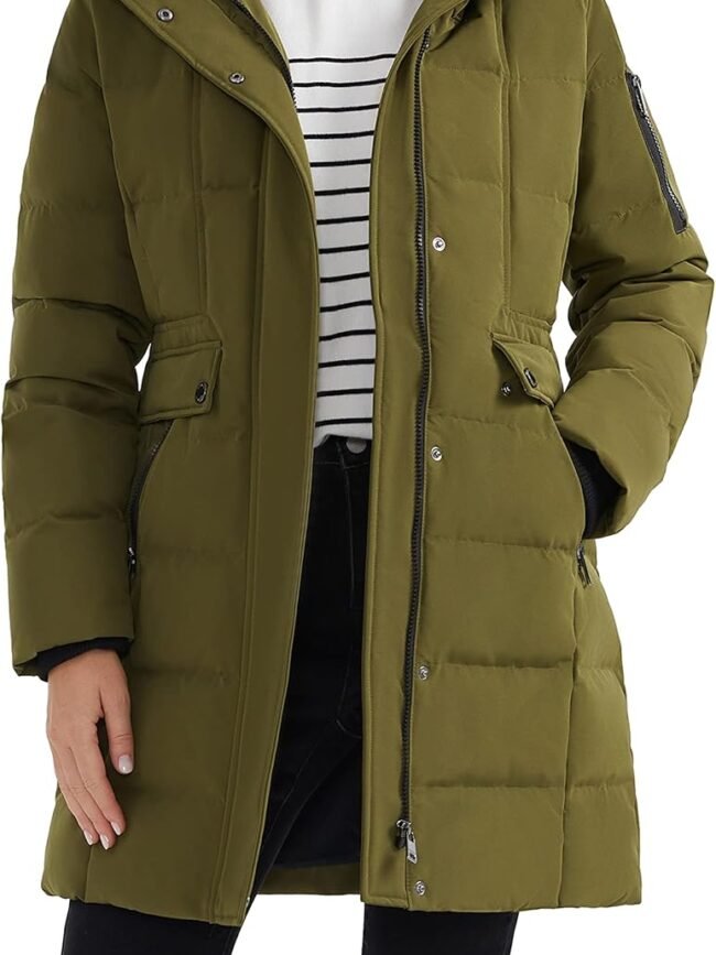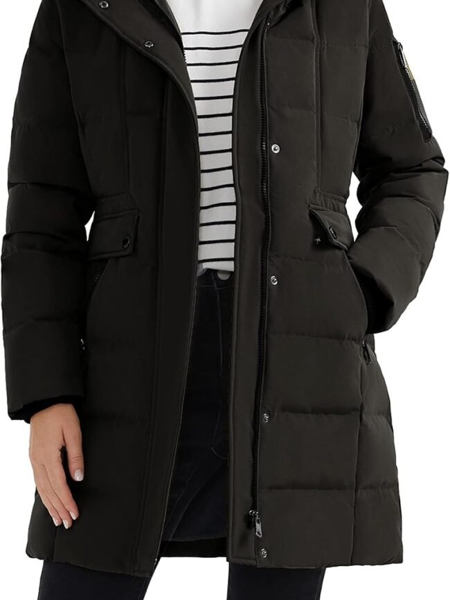 WATER REPELLENT: Our Women's Long Down Jacket features an insulated, durable water and wind resistant shell, built to keep the drizzle out while keeping you supremely dry and warm