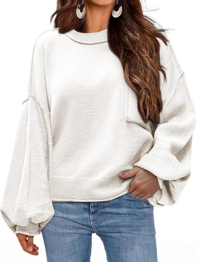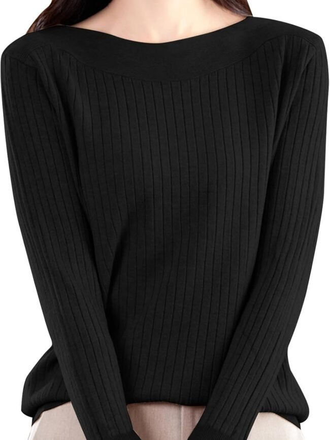Feature: This ribbed sweater top features a wide neckline, rolled edges, a bust pocket, billowy sleeves, drop shoulders, and a relaxed fit. With its basic solid color and elegant simplicity, it never goes out of style.