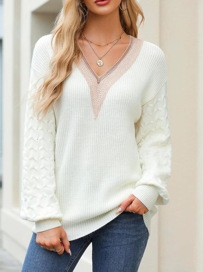 Unique lace v neck sexy sweaters design adds a touch of elegance and femininity to the sweater, pineapple crochet long sleeve making it both stylish and trendy, Stay cozy and chic this fall with our trendy women's weaters all 2026 collection.