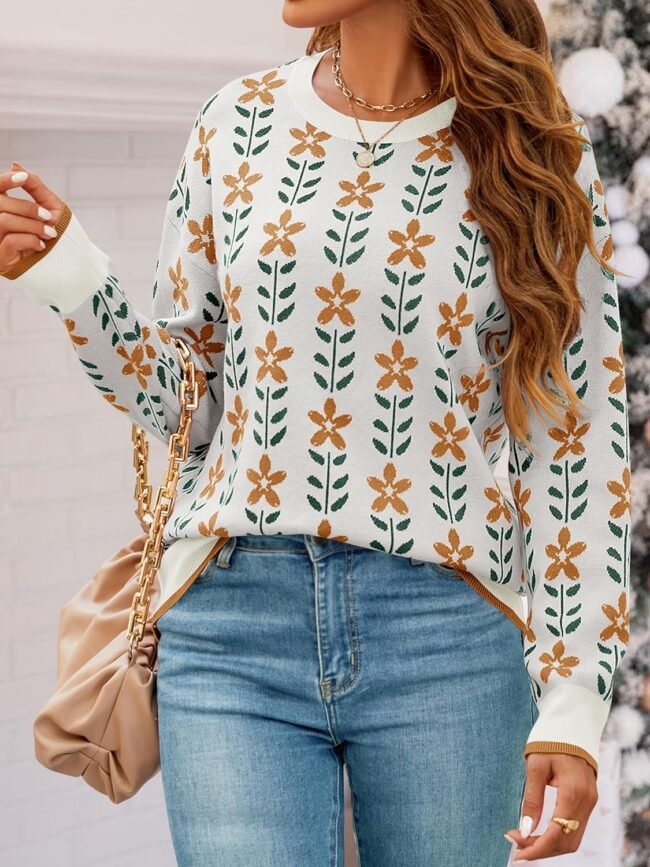 The flower printed sweater offers a casual and stylish look, you can pair it with your favorite jeans or leggings and sneakers for a comfy yet stylish look when running errands or meeting friends for coffee. With its cute fashion styling, this pullover sweater is sure to become a staple in your wardrobe, lasting through multiple seasons.