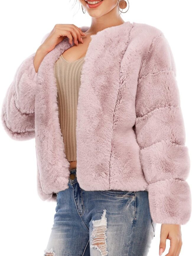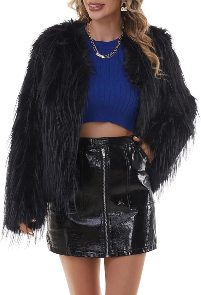 • Features: We use 1200 gram weight high-quality fabric to ensure warm and wind proof. Long fluffy furry sleeve coat covered by layered plush, with comfortable lining, ensuring incredibly warm and stylish look. Faux Fur Coats/Women’s Winter Coat/Open Front Jacket For Women/Shaggy Faux Fur Coat/ 2 Sides Pockets/ Above Knee Length