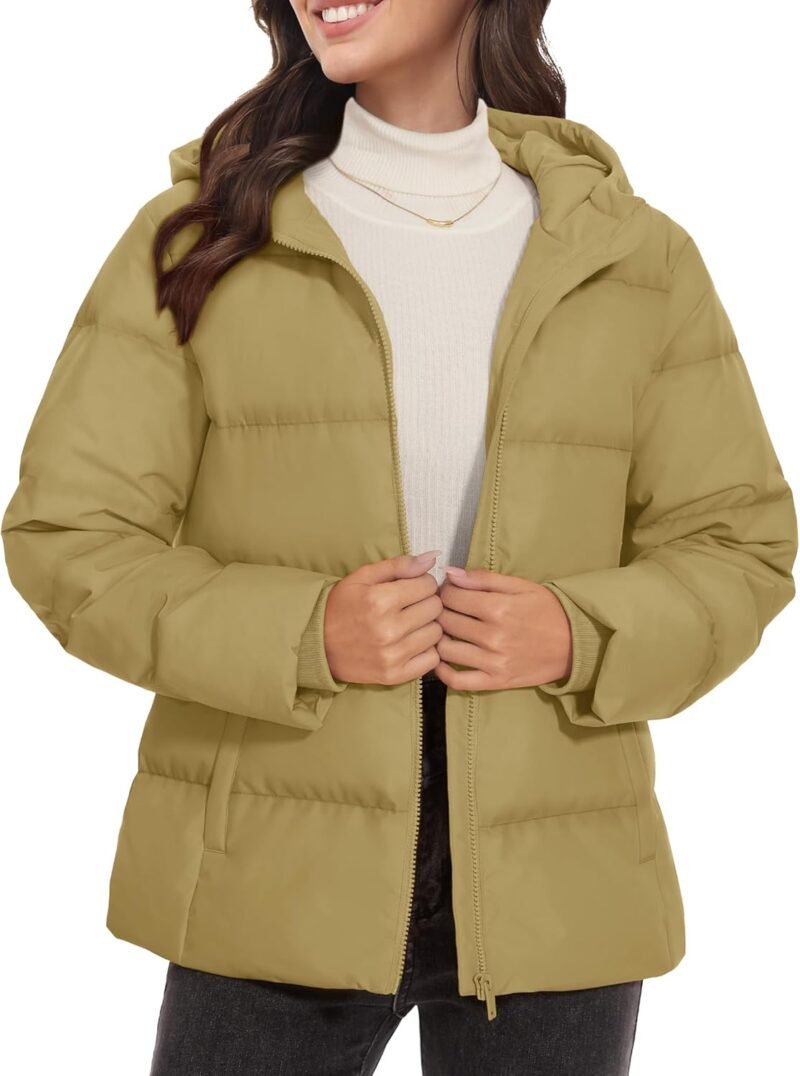 Women Down Jacket with Hood Lightweight Thermal Quilted Coat with Pockets Zip-up Winter Warm Jacket