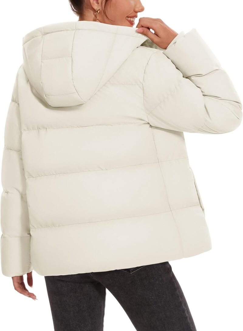 Women Down Jacket with Hood Lightweight Thermal Quilted Coat with Pockets Zip-up Winter Warm Jacket