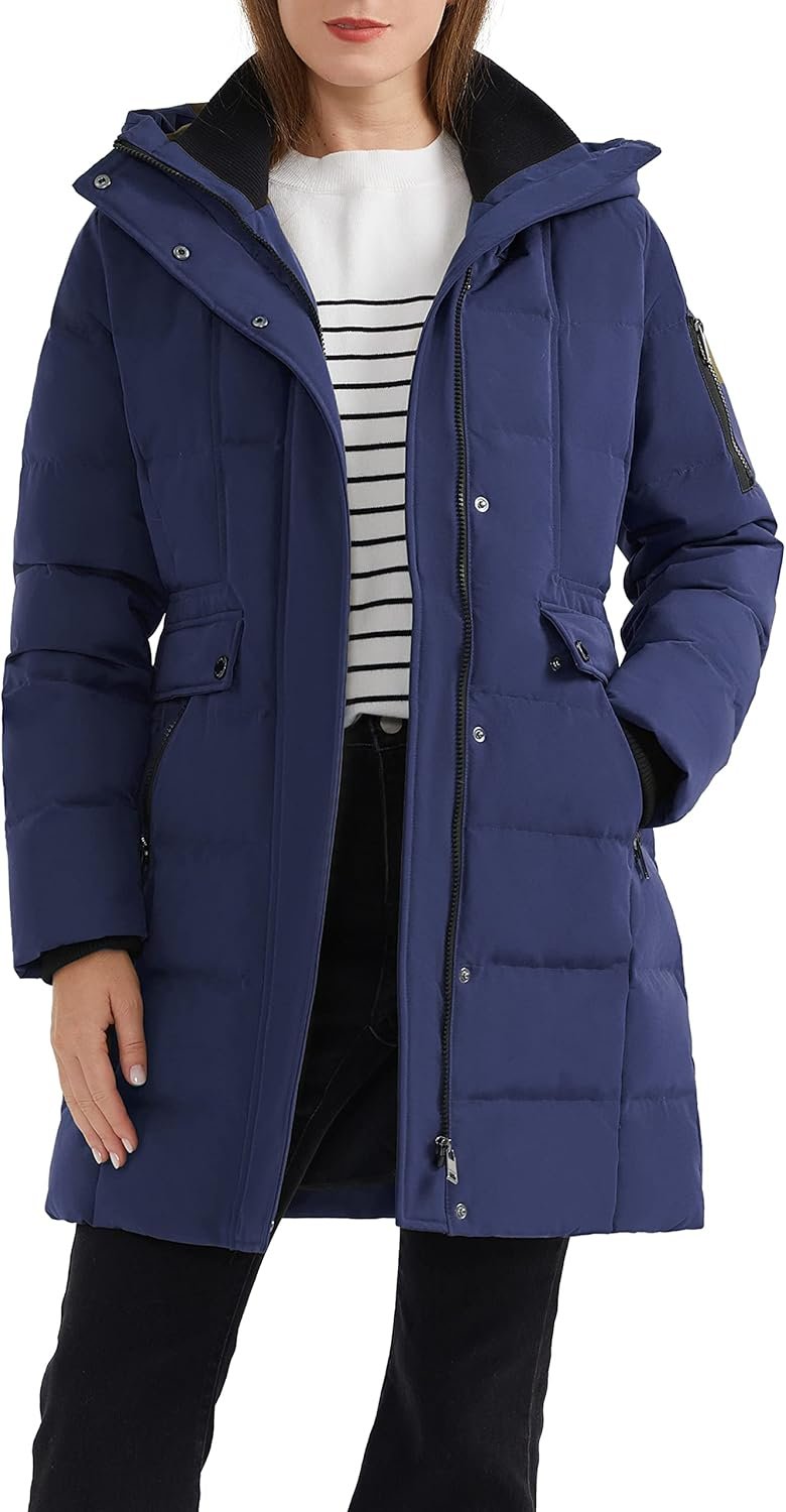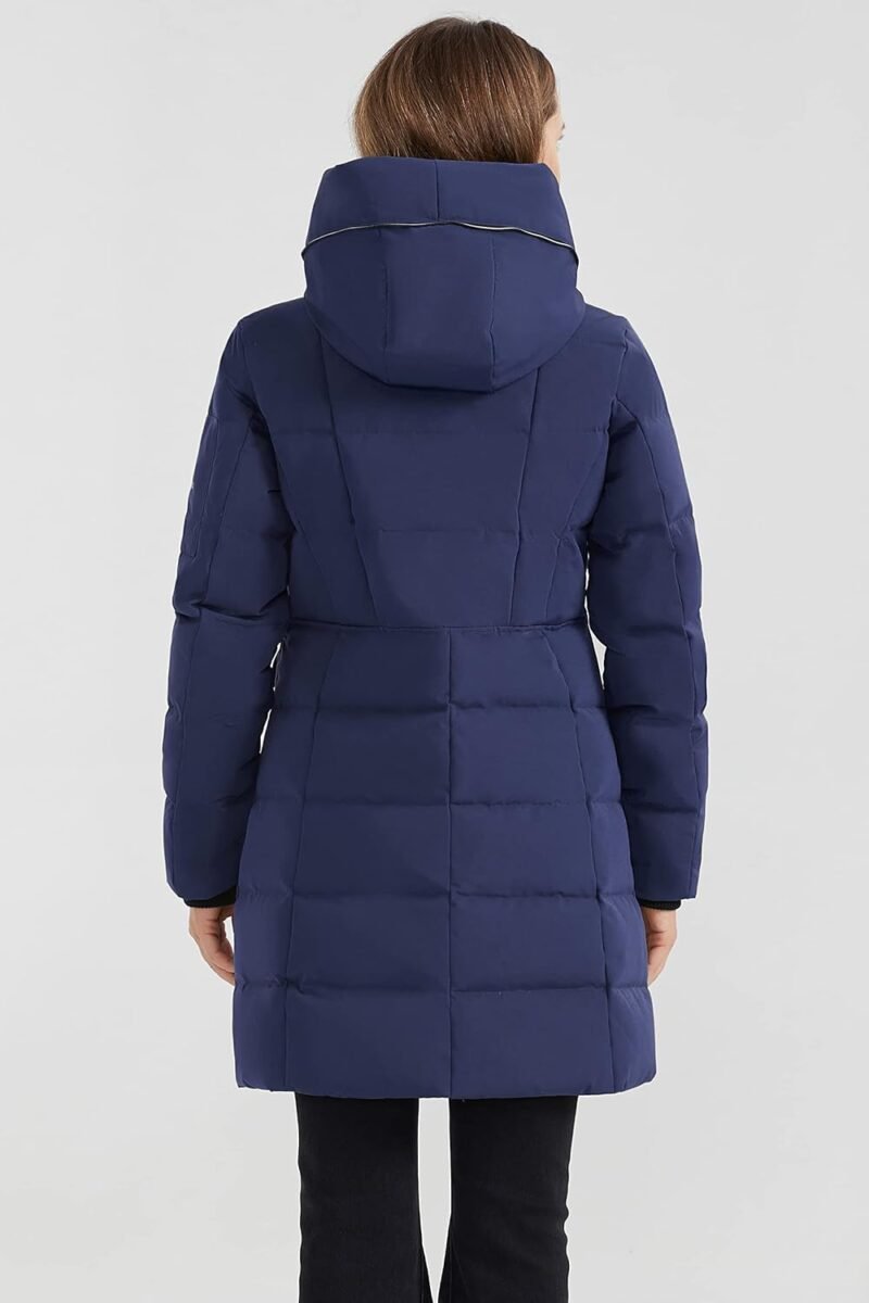 Women Hooded Winter Down Coat Quilted Mid Length Jacket