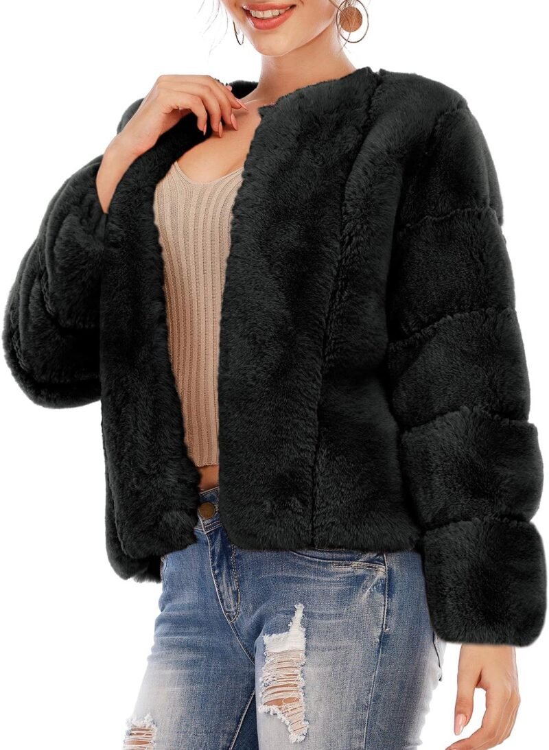 • ➣Solid color design,chic and trendy. There is a hidden hook closure at front,can be casual or formal.Note:The sleeves of this fur coat might be a little long,please refer to our size chart before your rchase