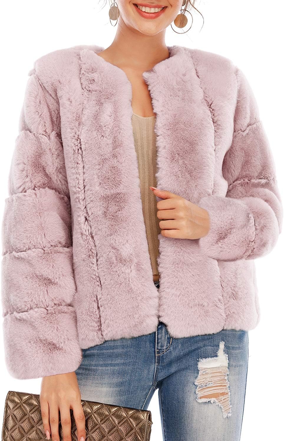 • ➣Solid color design,chic and trendy. There is a hidden hook closure at front,can be casual or formal.Note:The sleeves of this fur coat might be a little long,please refer to our size chart before your rchase
