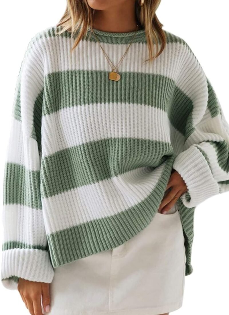 Women’s 2026 Fall Long Sleeve Crew Neck Striped Color Block Comfy Loose Knitted Pullover Sweater