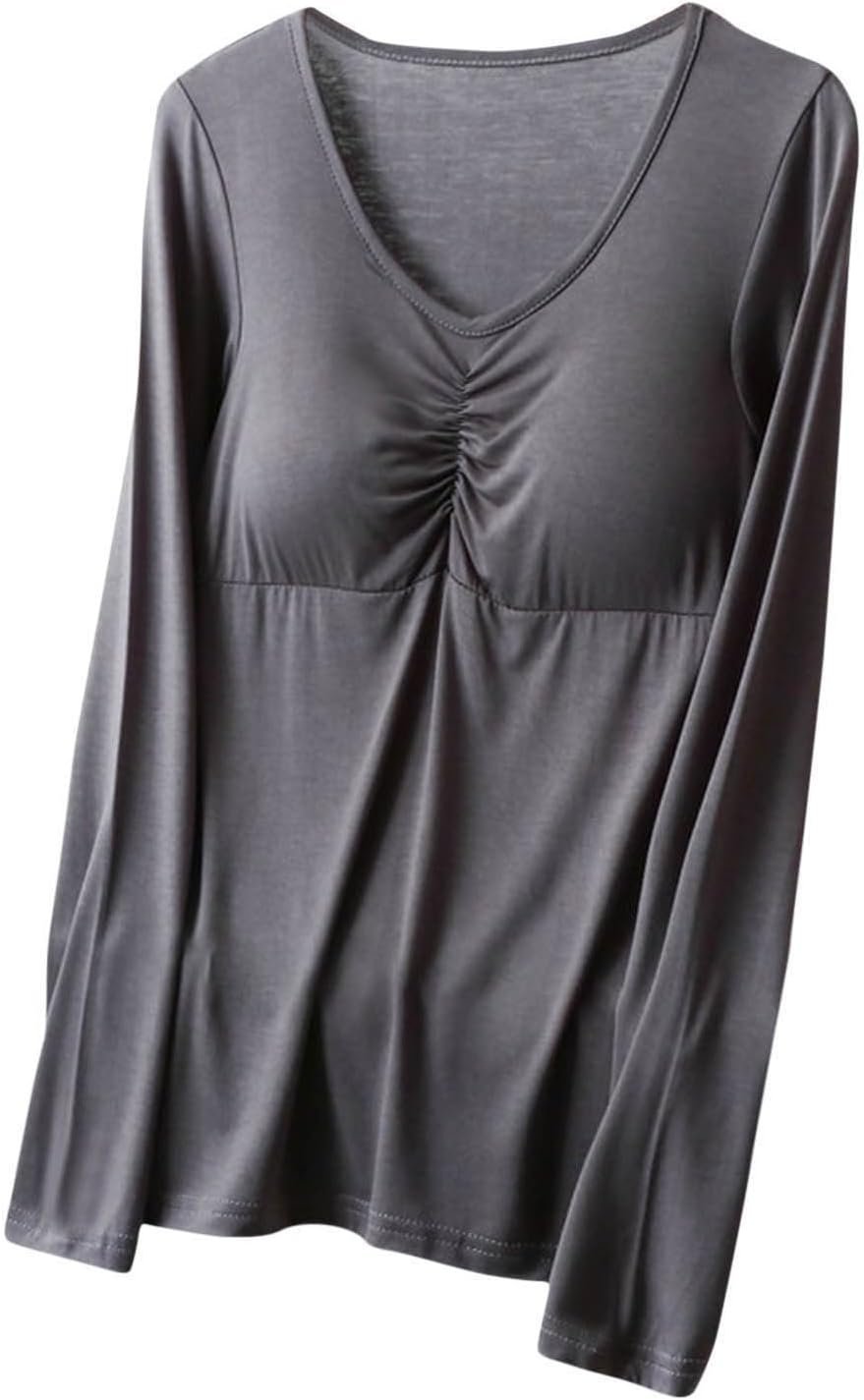 Women’s Bottoming Shirt Tops Casual V Neck Chest Pad Tee Shirts Fashion Comfy Blouses Tee 2026 Fall Tops Clothes