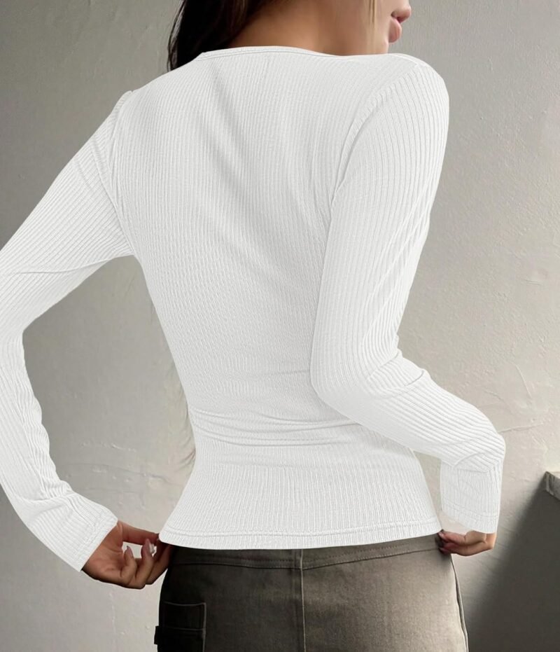 Women’s Long Sleeve Button Ribbed Shirts 2026 Fall Scoop Neck Casual Henly Tops